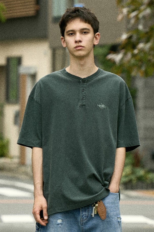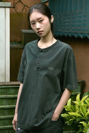 시그니처 로고 피그먼트 헨리넥 티셔츠 FST748 / 4color