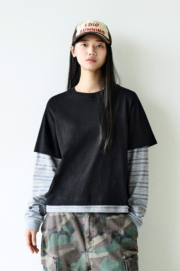 크롭 스트라이프 레이어드 티셔츠 FLT133 / 3Color