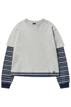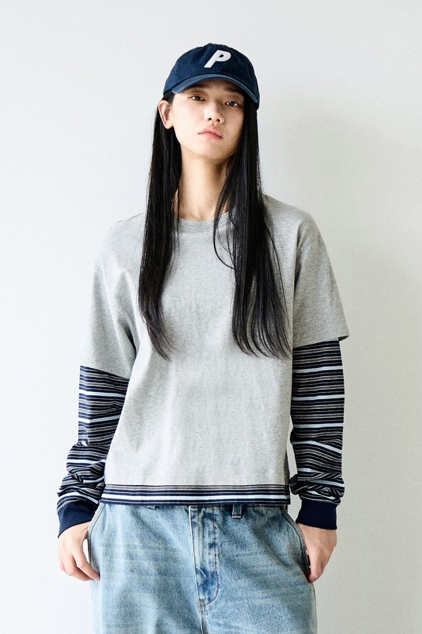 크롭 스트라이프 레이어드 티셔츠 FLT133 / 3Color