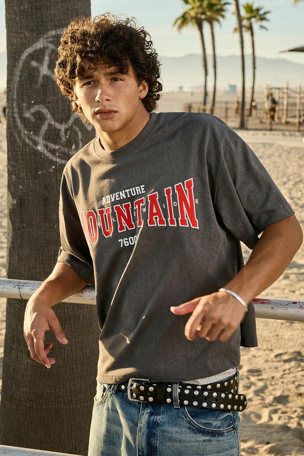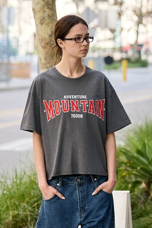플루크 크롭 월드 마운틴 자수 로고 피그먼트 반팔 티셔츠 FST741C / 4Color