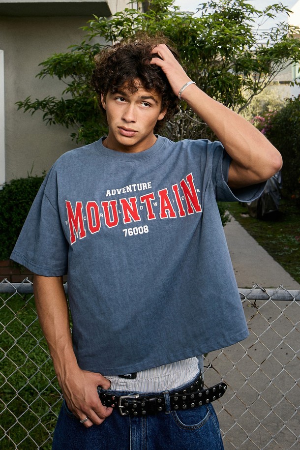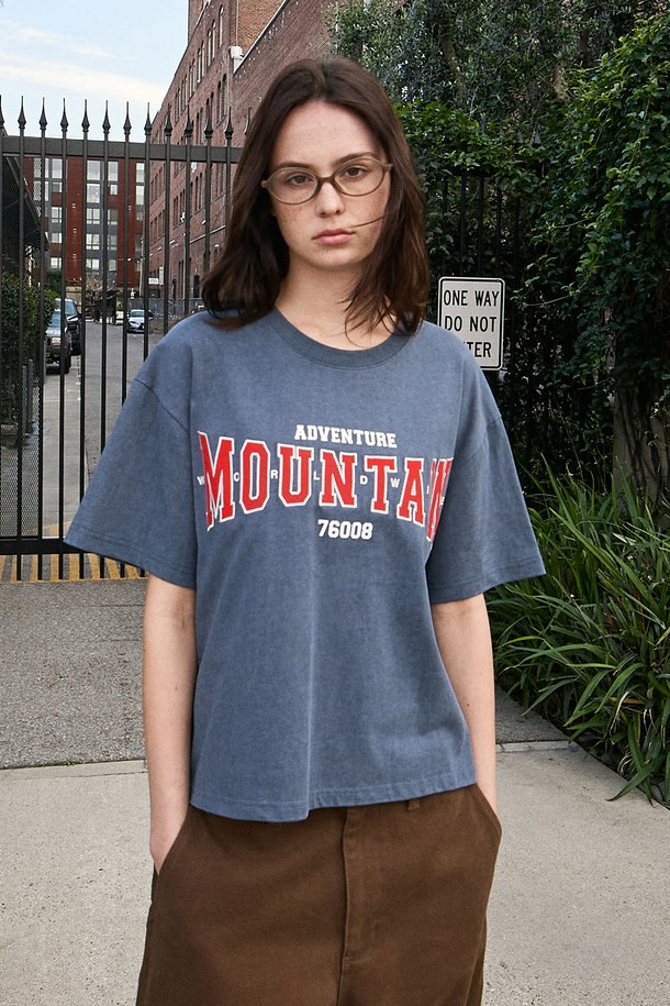 플루크 크롭 월드 마운틴 자수 로고 피그먼트 반팔 티셔츠 FST741C / 4Color