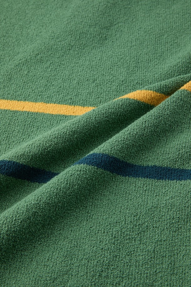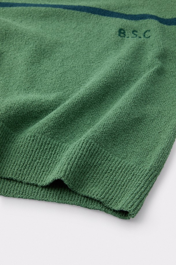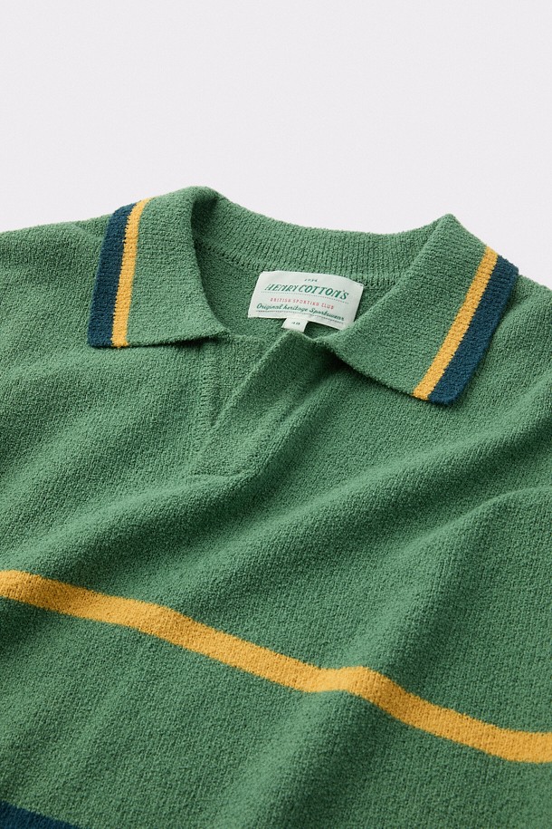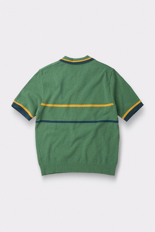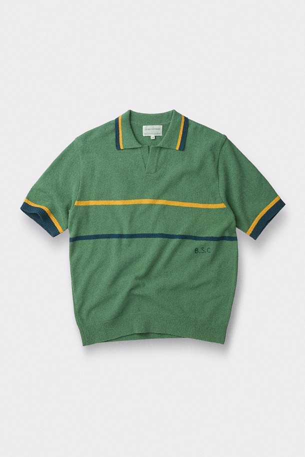 [British Sporting Club] Stripe Short-Sleeves Open-Polo Knit