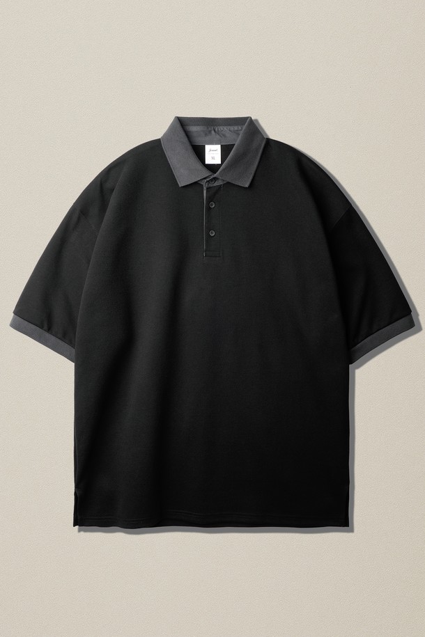 체스 링거 카라 반팔티셔츠 블랙 KJST2616