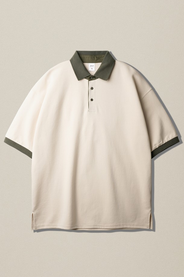 체스 링거 카라 반팔티셔츠 크림그레이 KJST2616