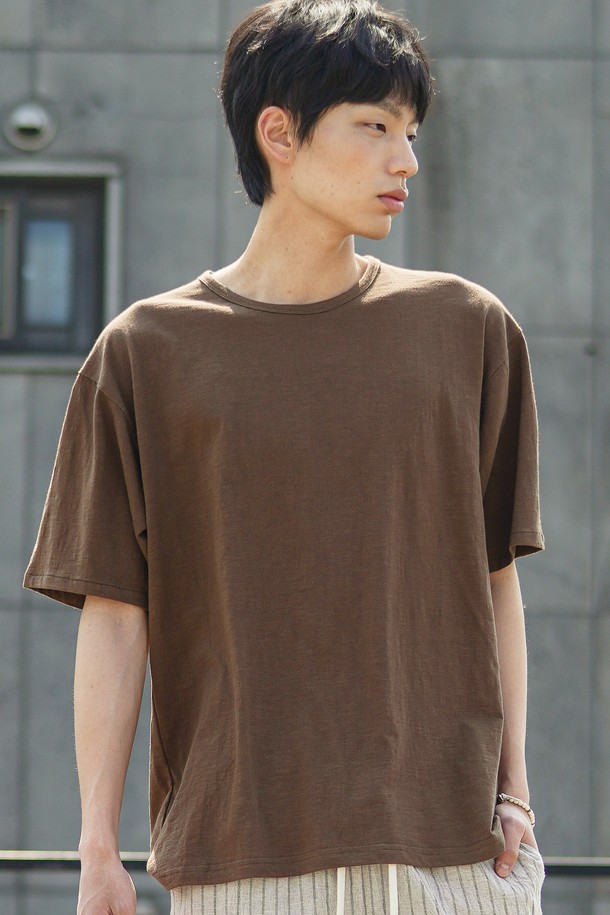 슬럽 하프U넥 반팔티셔츠 브라운 OYST2636