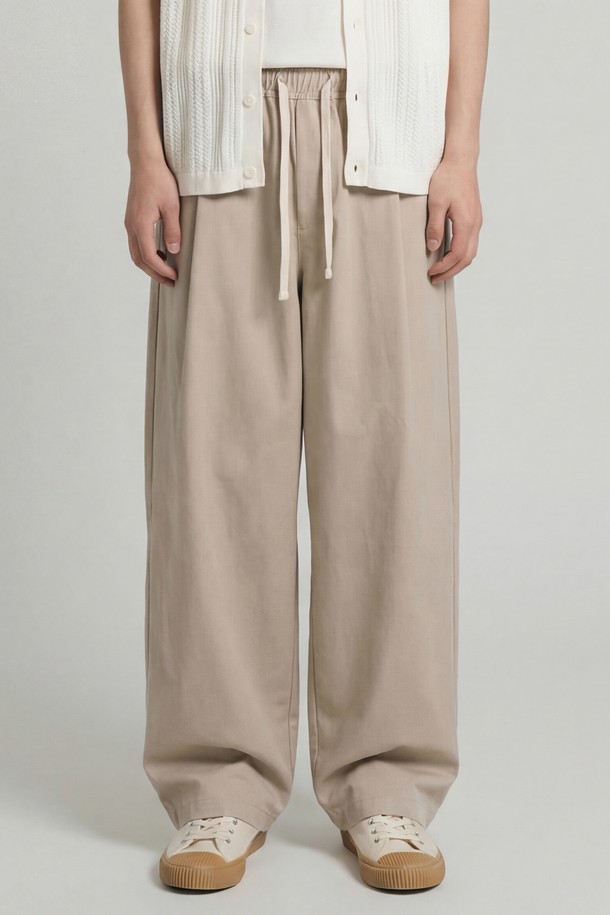 힌지 원턱 커브드 팬츠 그레이베이지 ISLP2699