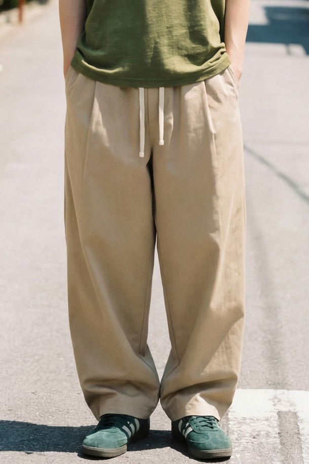 힌지 원턱 커브드 팬츠 베이지 ISLP2699