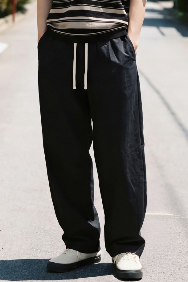 힌지 원턱 커브드 팬츠 블랙 ISLP2699