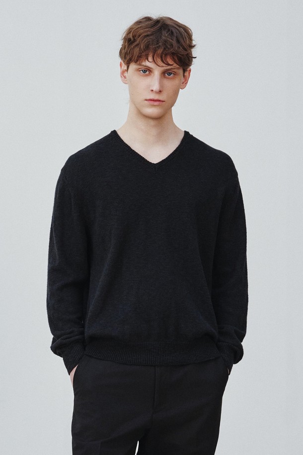 브리즈 썸머 슬럽 브이넥 니트 블랙