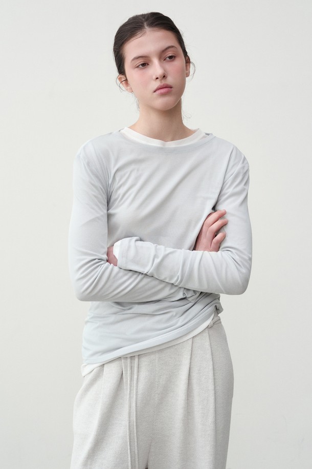 베리 핑거홀 롱 슬리브 탑 아이스블루