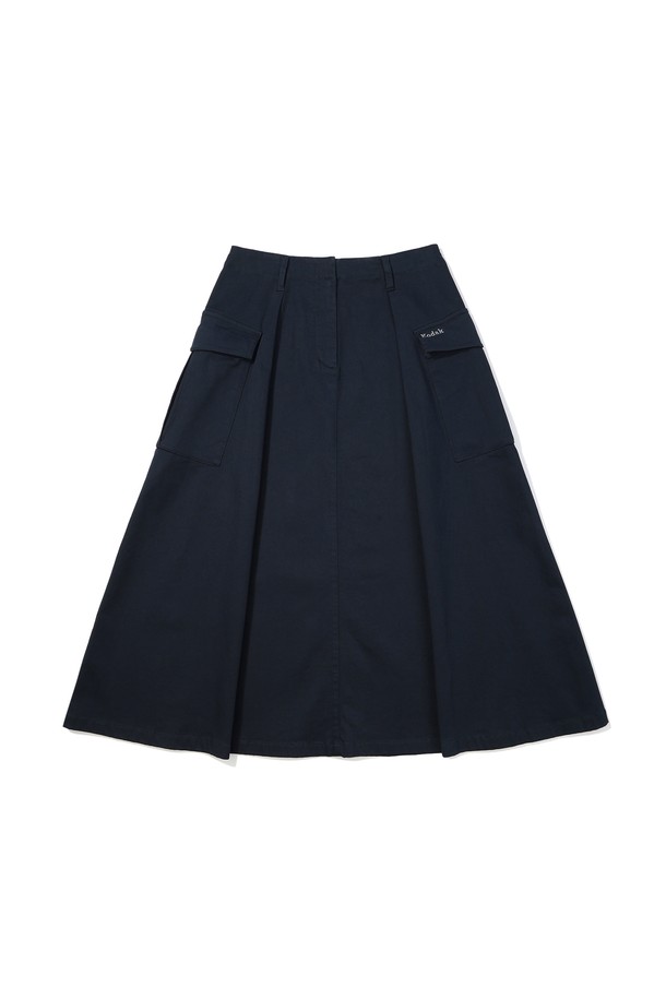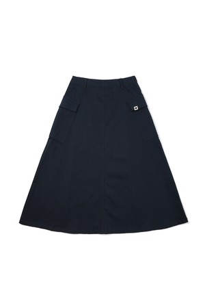 코튼 플레어 롱 스커트 NAVY