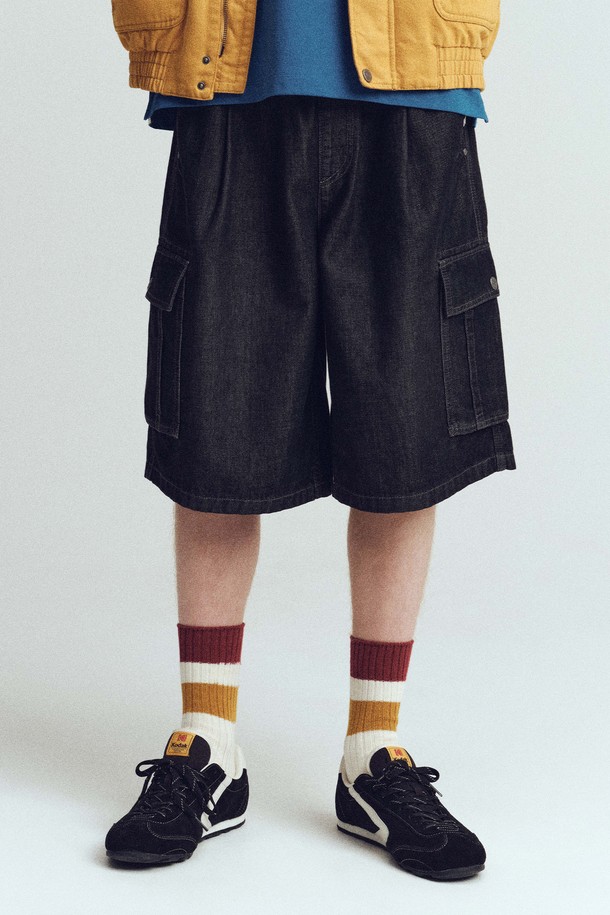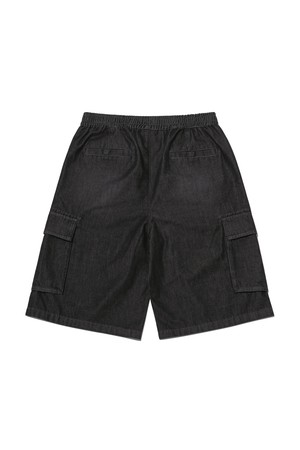 RGB 데님 버뮤다 카고 반바지 BLACK