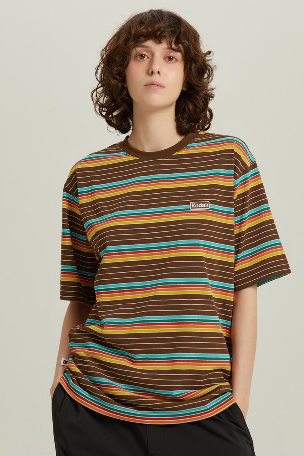 멀티 스트라이프 반팔 티셔츠 BROWN