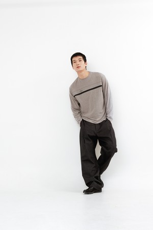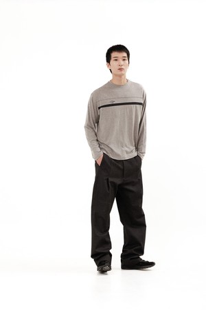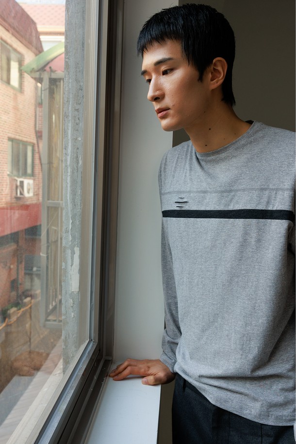 Layered Panel Long Sleeve_____melange grey/dark grey