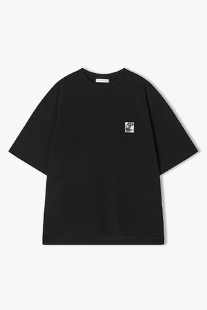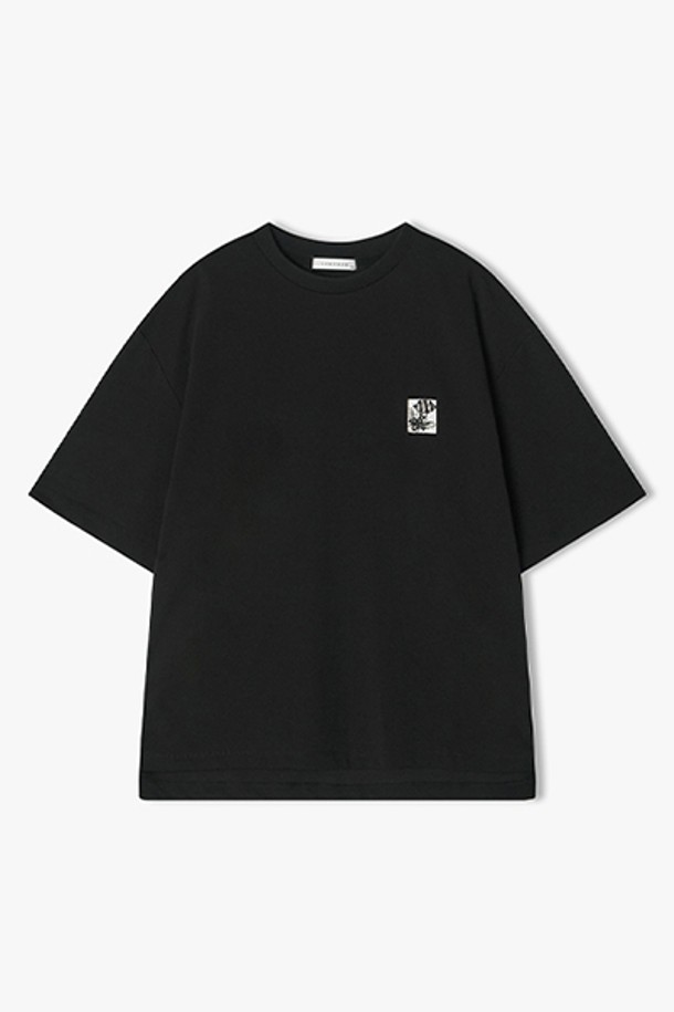 [25SS] LLM42508 블랙 플라워 아트웍 하프 티셔츠