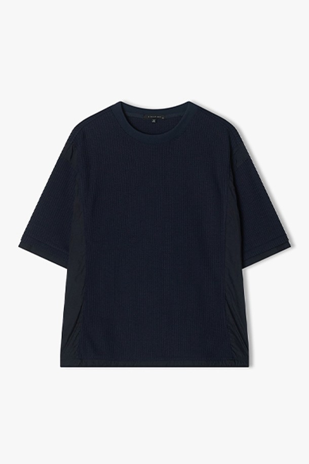 [25SS] LLM41539 다크네이비 와플 텍스쳐 믹스 하프 티셔츠