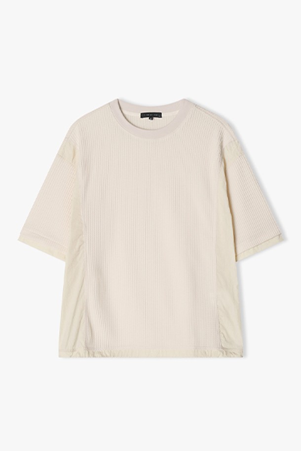 [25SS] LLM41538 크림 와플 텍스쳐 믹스 하프 티셔츠