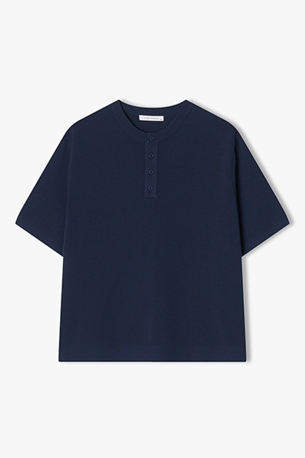 [25SS] LLM51586 라이트네이비 솔리드 헨리넥 하프 니트 탑