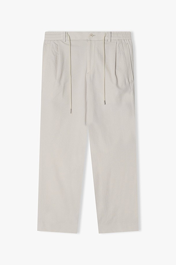[25SS] LLM23502 베이지 테이퍼드핏 원턱 도비 폴리 스트링 팬츠