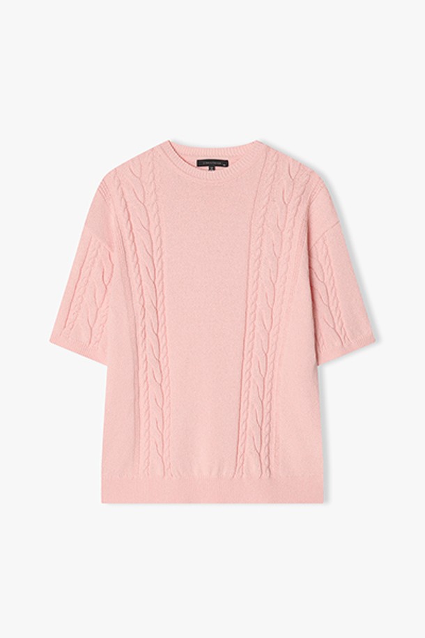 [25SS] LLB51596 핑크 라운드넥 케이블 니트 탑
