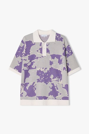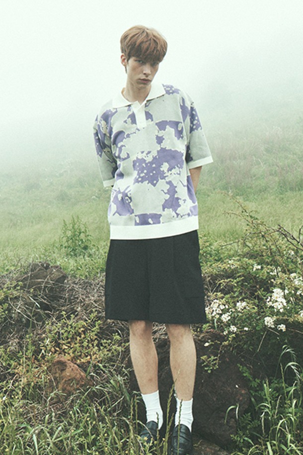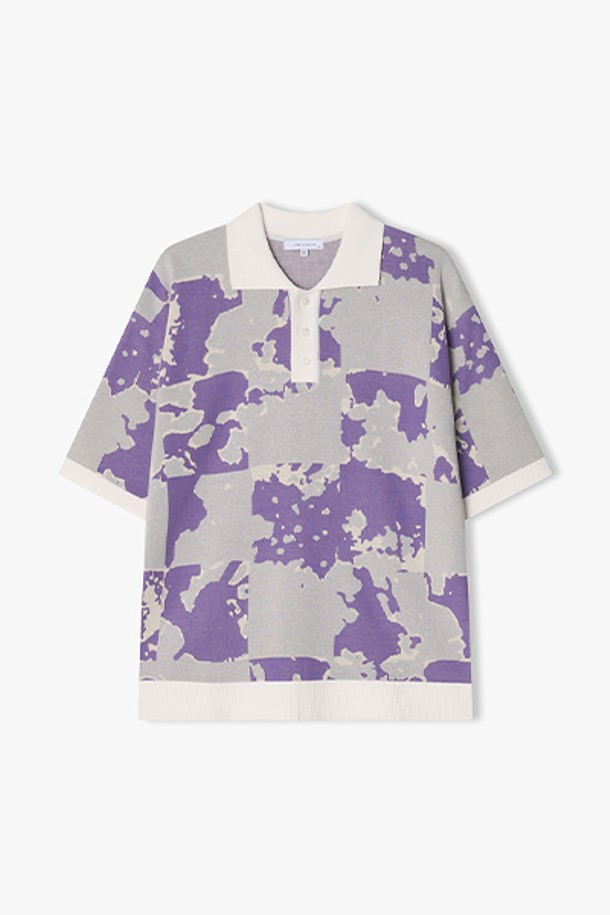 [25SS] LLB51592 라이트그레이 자카드 패턴 칼라 하프 니트 탑