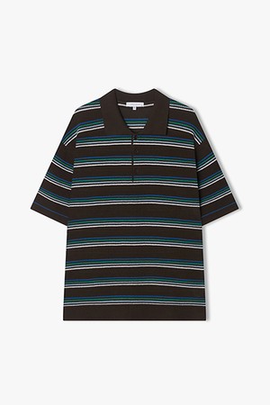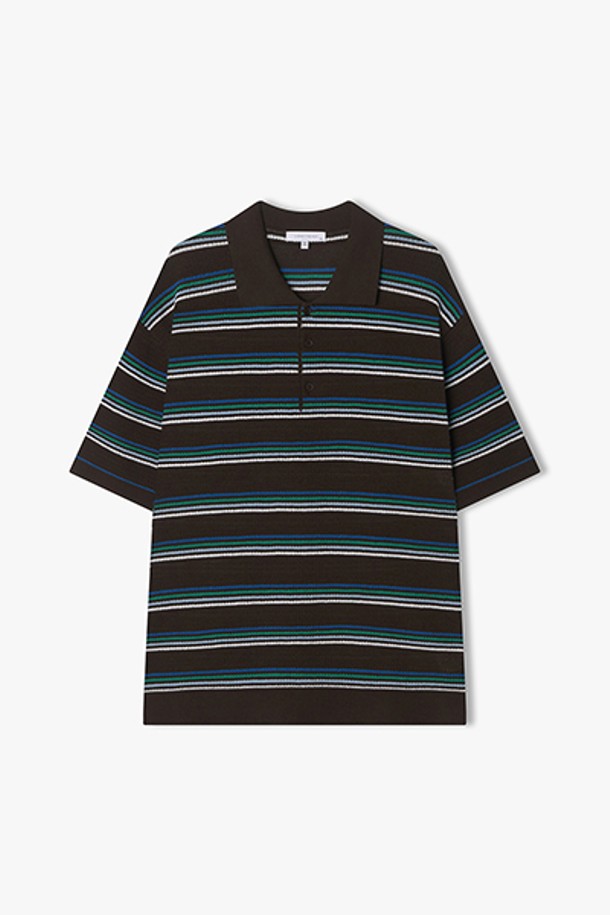 [25SS] LLM51546 모카 메쉬 스트라이프 칼라 하프 니트 탑