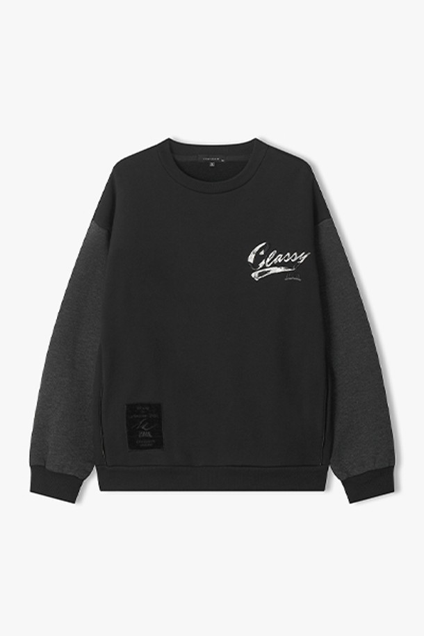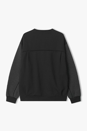 [25FW] LLF41610 블랙 자수 텍스쳐 믹스 라운드 티셔츠
