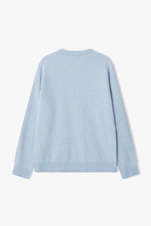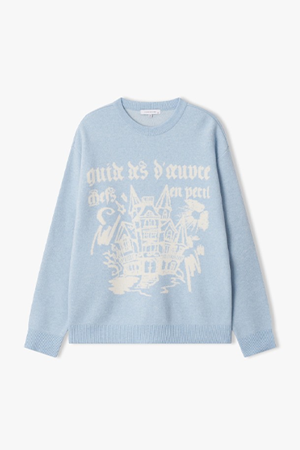 [25FW] LLW51621 스카이블루 세미오버핏 자카드 아트웍 라운드 니트