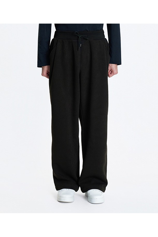 [25FW] LLF23665 블랙 와이드핏 원턱 니트 텍스쳐 스트링 밴딩 스폼 팬츠