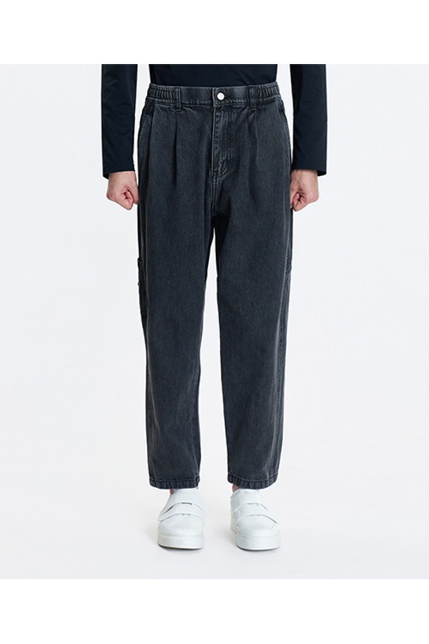 [25FW] LLF23674 블랙 배기핏 투턱 라인절개 데님 팬츠