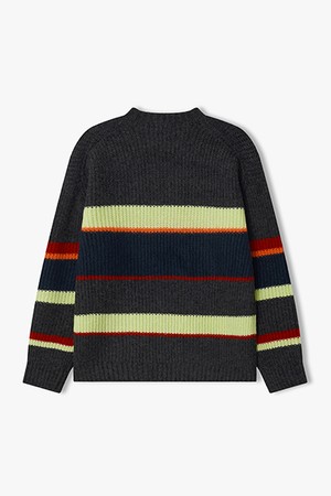 [25FW] LLW51630 멜란지그레이 스트라이프 라운드넥 니트