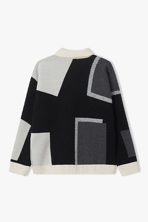 [25FW] LLW51642 그레이 자카드 컬러 블럭 카라 니트