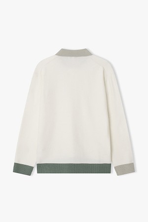 [25FW] LLW51640 그린 컬러 배색 카라 니트