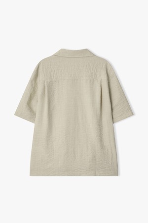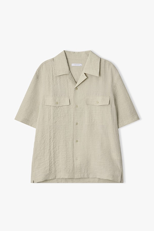 [26SS] LMM31707 베이지 오픈 칼라 더블 스티치 디테일 하프 셔츠