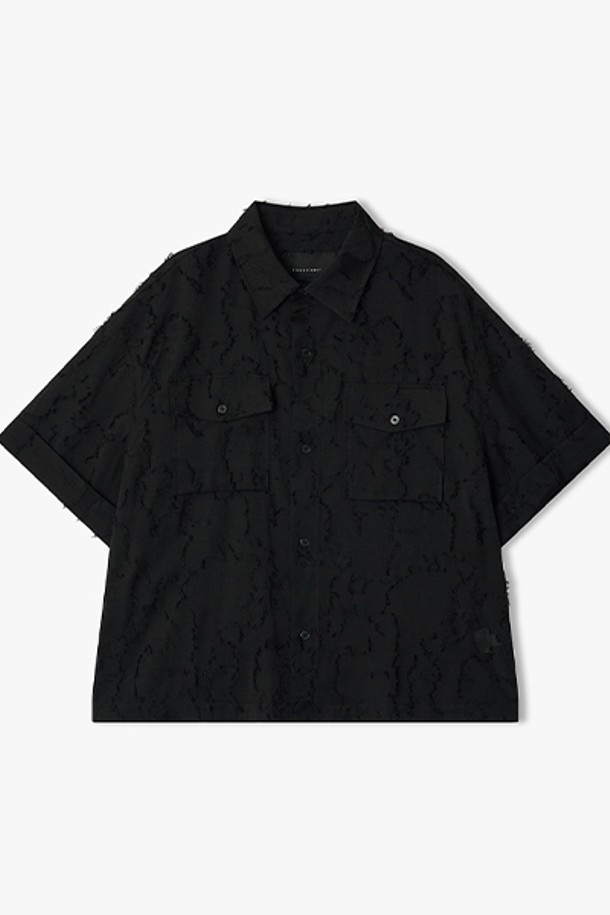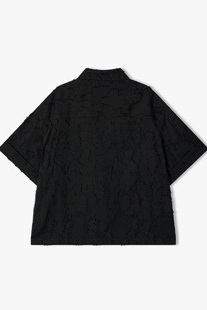 [26SS] LMM32701 블랙 오버핏 클립 자카드 하프 셔켓