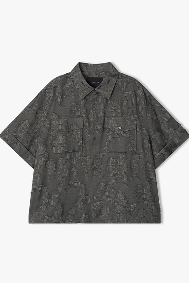 [26SS] LMM32702 다크그레이 오버핏 클립 자카드 하프 셔켓