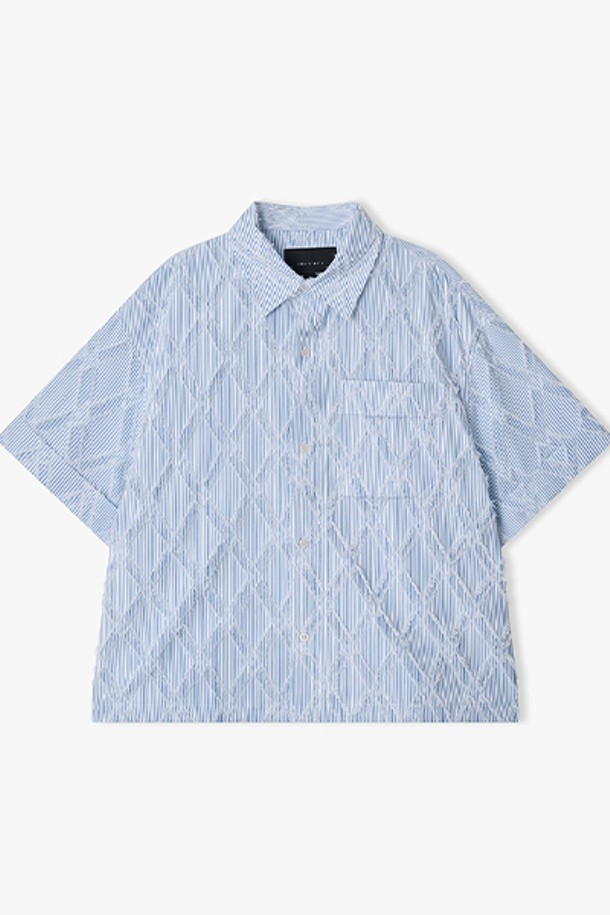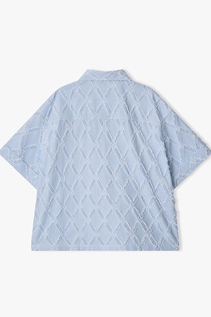 [26SS] LMM32703 라이트블루 스퀘어 자카드 스트라이프 하프 셔켓