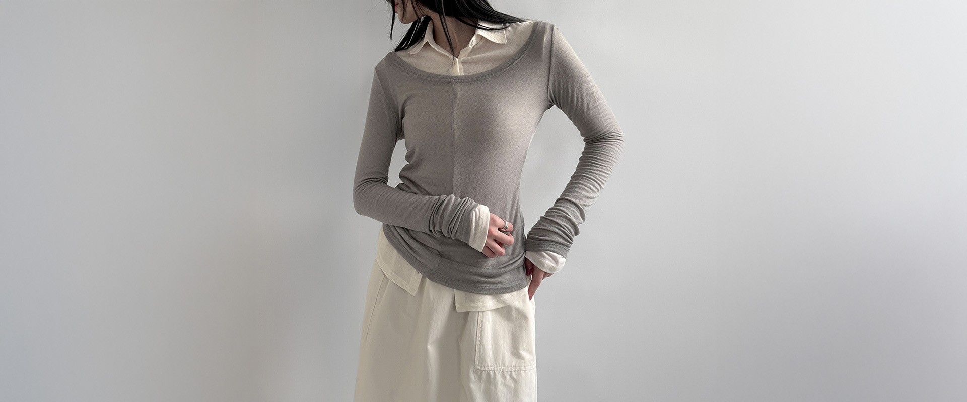 Layering Jersey Skirt_Melange Gray