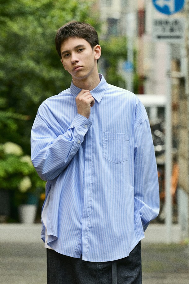 미니멀프로젝트 미니멀 오버핏 히든 플라켓 슬릿 스트라이프 셔츠 MLS218 / 2color