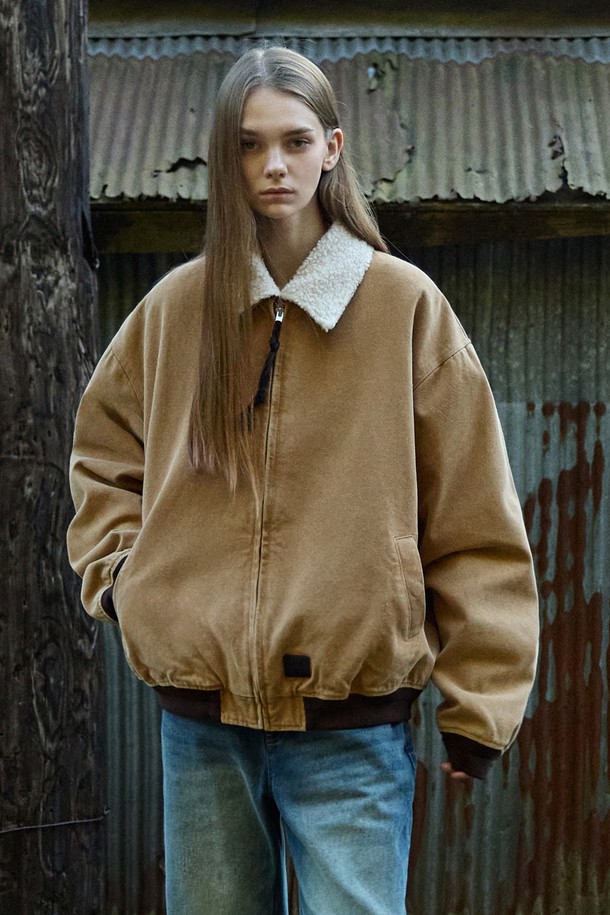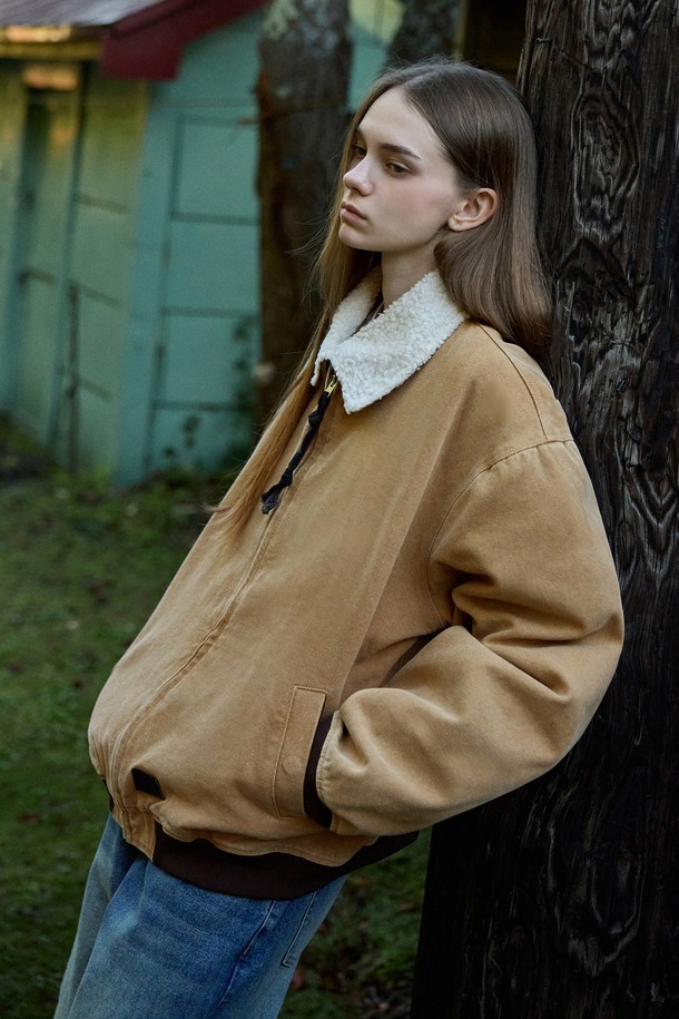 슬로우 레코드 보아 카라 데님 봄버 자켓 MJK129 / 2color