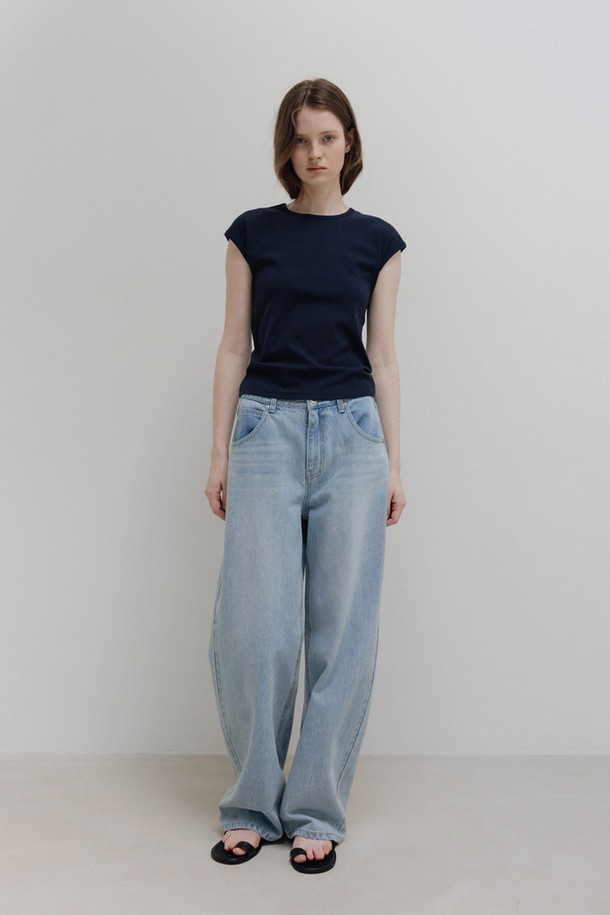 MOIA - 반소매 티셔츠 - ribbed t-shirt (navy)