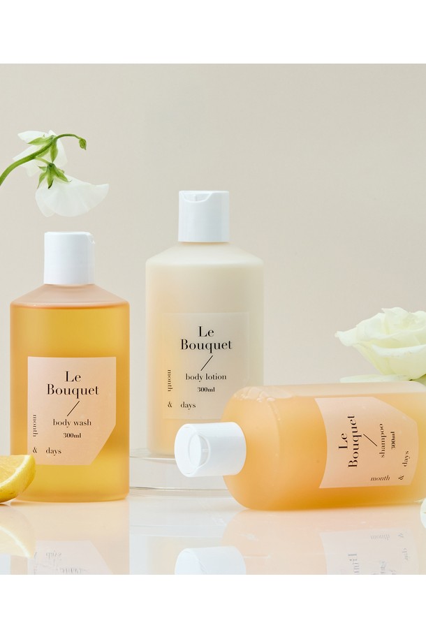 [3SET] 먼스앤데이즈 퍼퓸케어 르 부케 저용량 풀패키지 플로럴향 (샴푸 300ml + 바디워시 300ml + 바디로션 300ml)