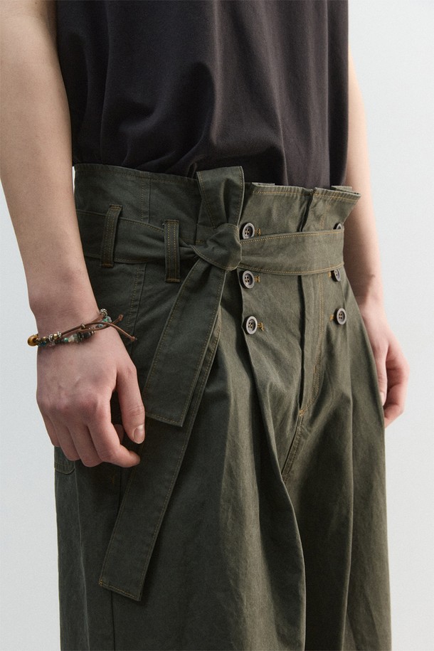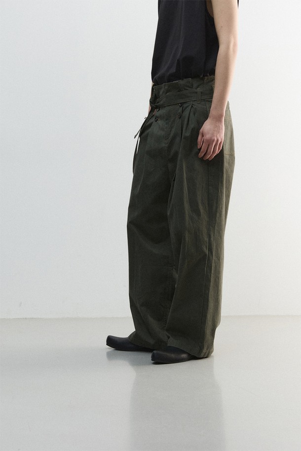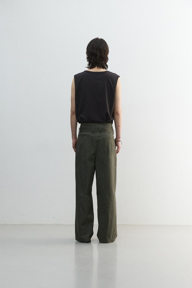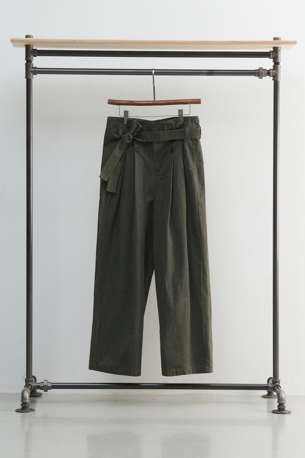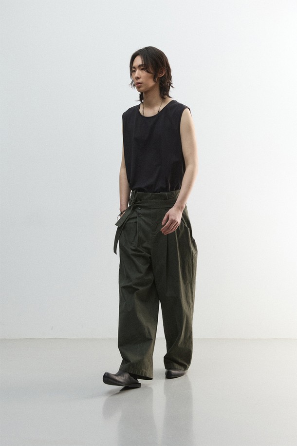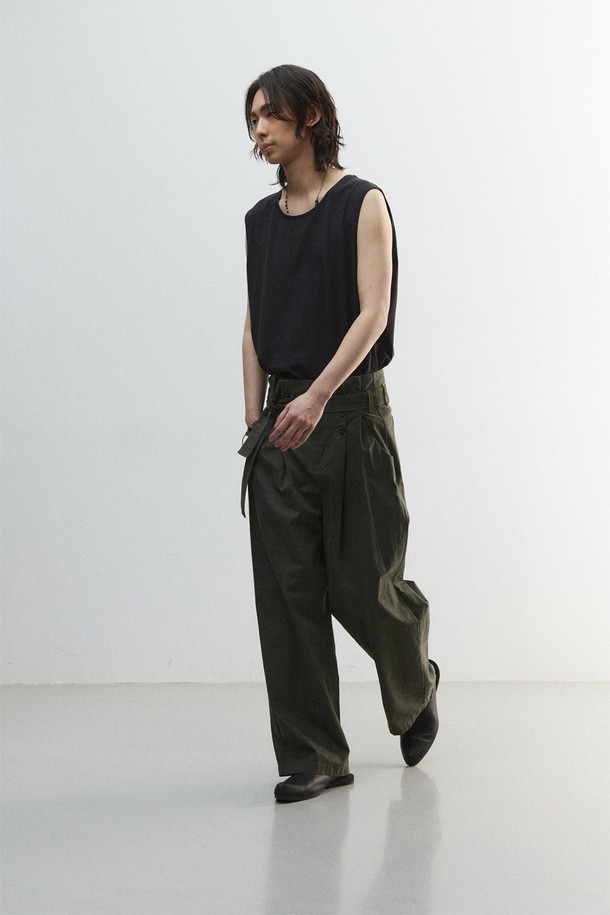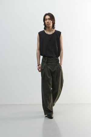 [11.0] 피치 크랙 플리츠 벨티드 팬츠