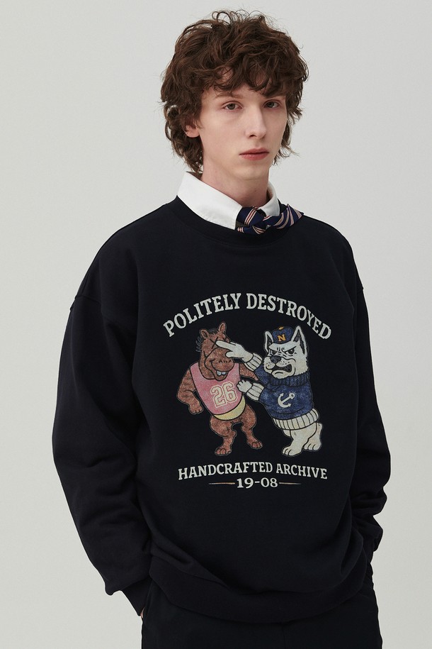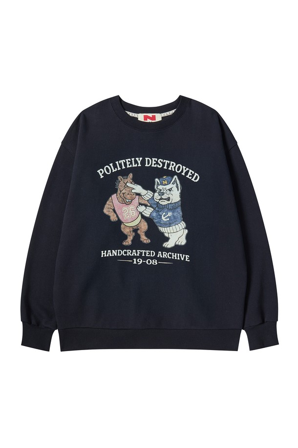 빈티지 아카이브 그래픽 스웨트 셔츠 네이비
