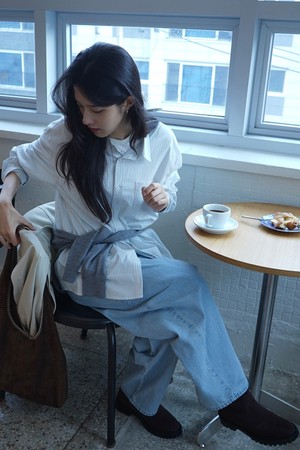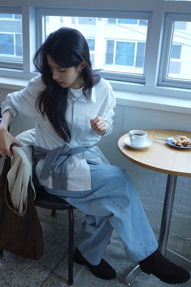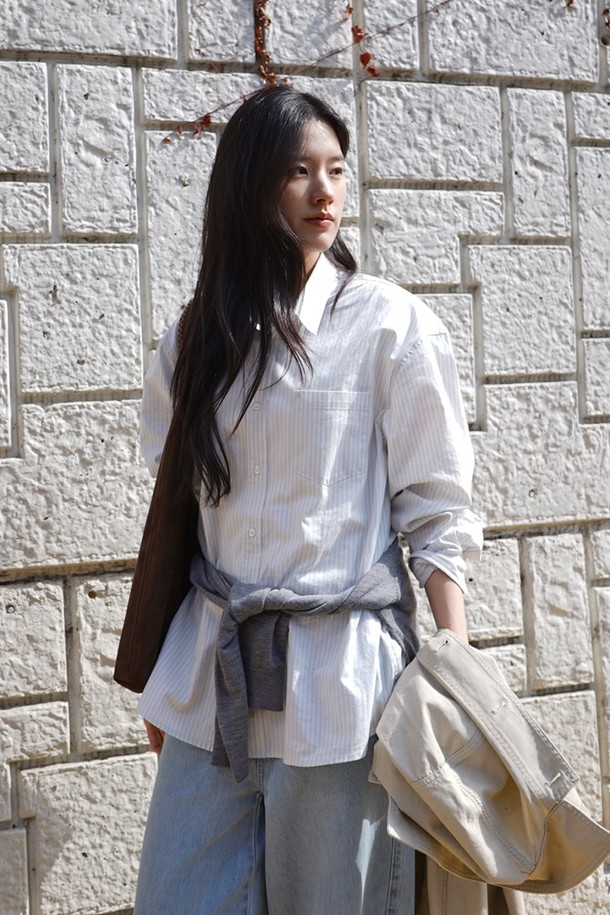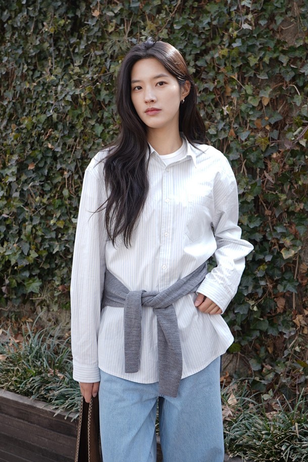 [지원 착용] 오가닉 코튼 스트라이프 셔츠 Light Blue
