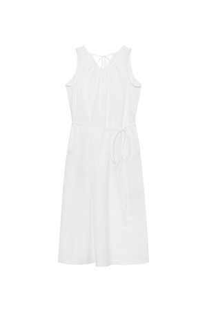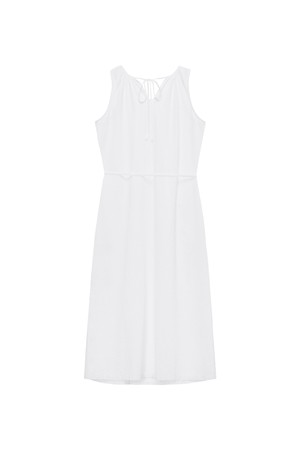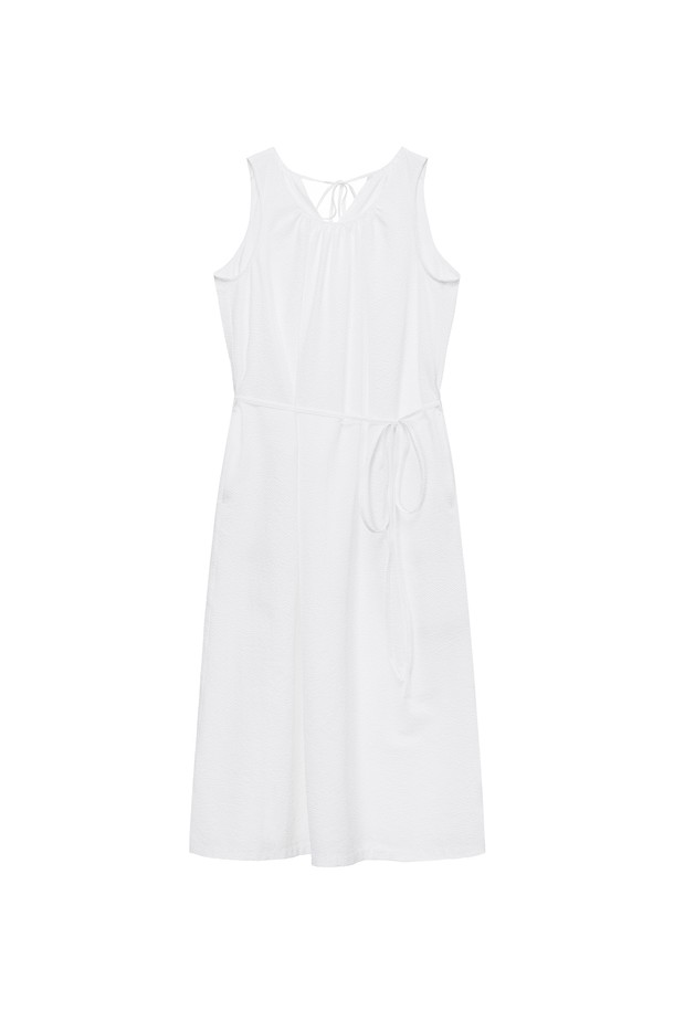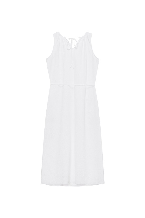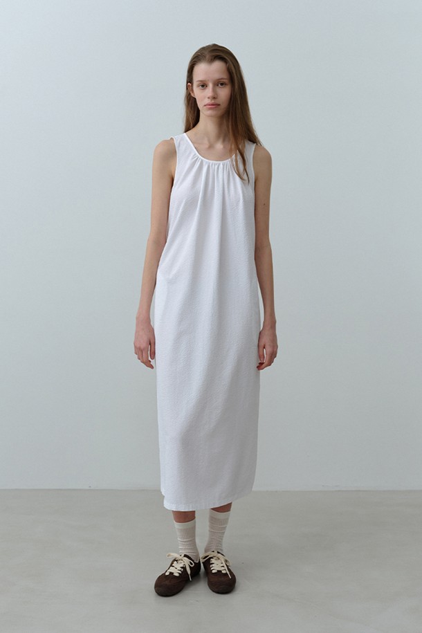 W 시어서커 넥 셔링 원피스 White
