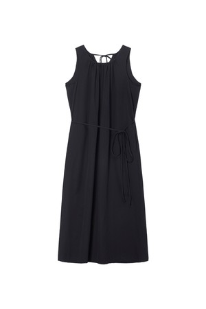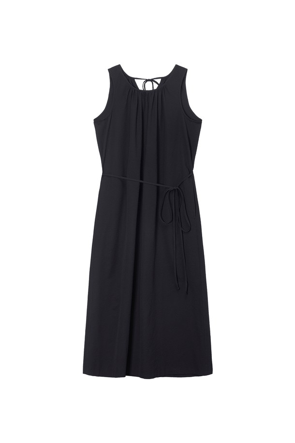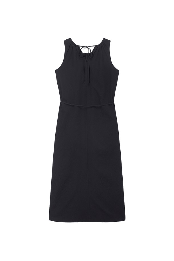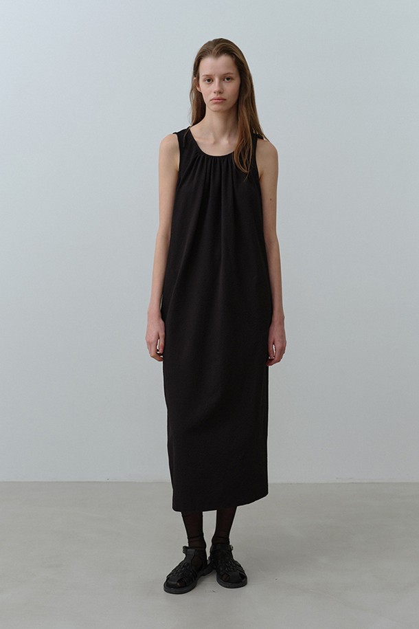 W 시어서커 넥 셔링 원피스 Black