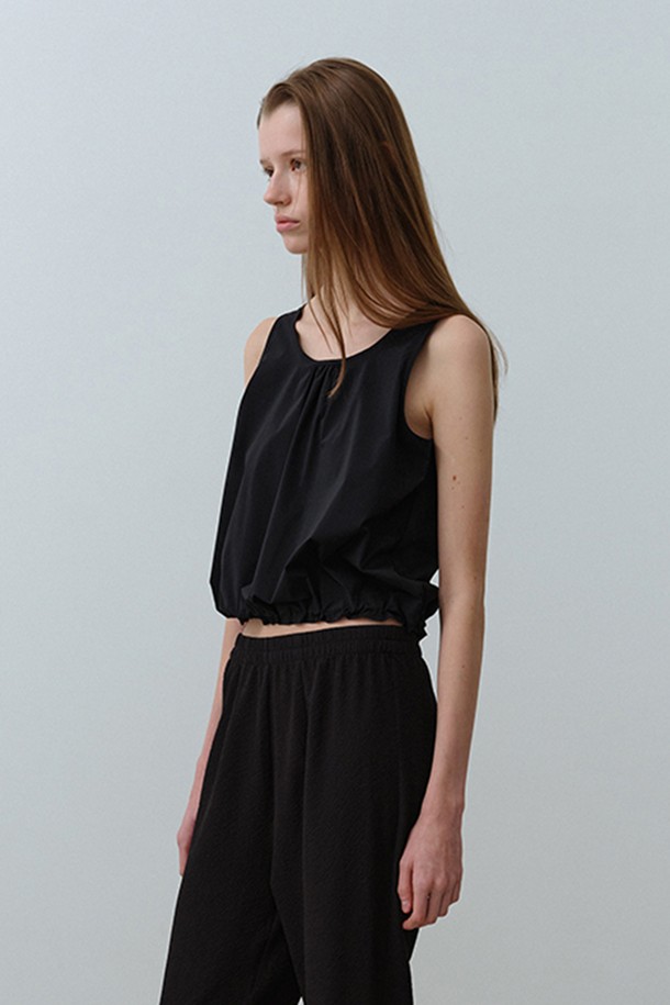 W 네오쿨 셔링 슬리브리스 탑 Black