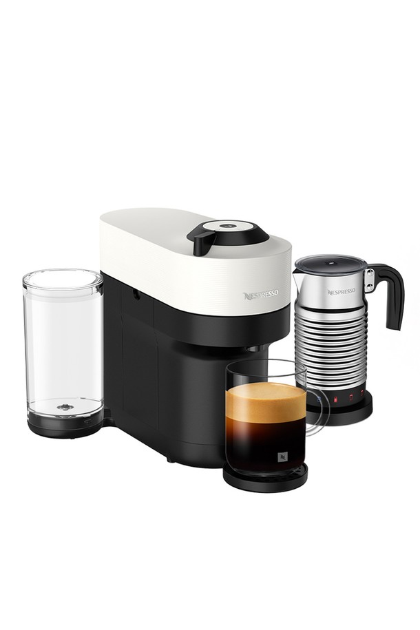 네스프레소 버츄오 팝+ GCV6 에스프레소 캡슐커피머신 화이트+에어로치노4