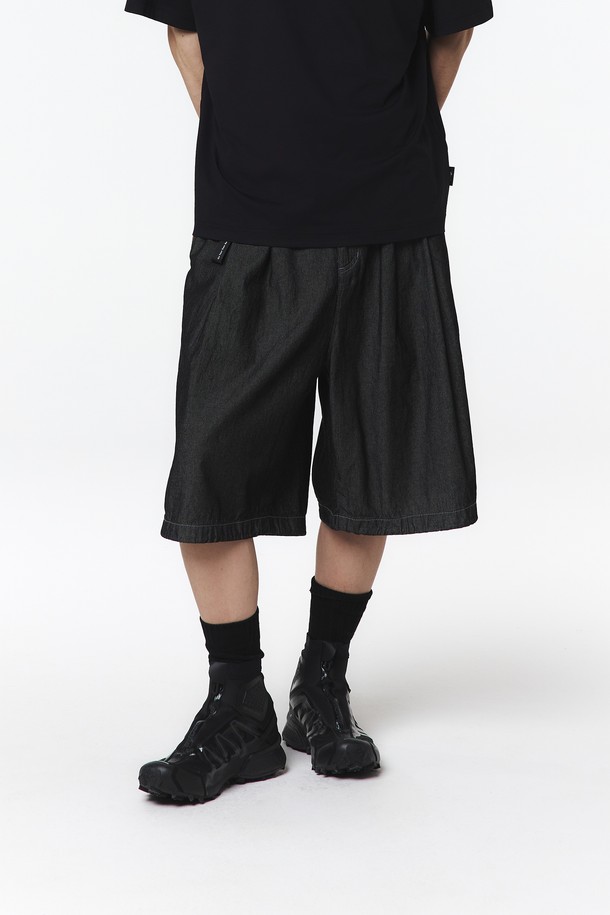 유니 와이드 스트링 버뮤다 팬츠 (블랙)_5LD2624
